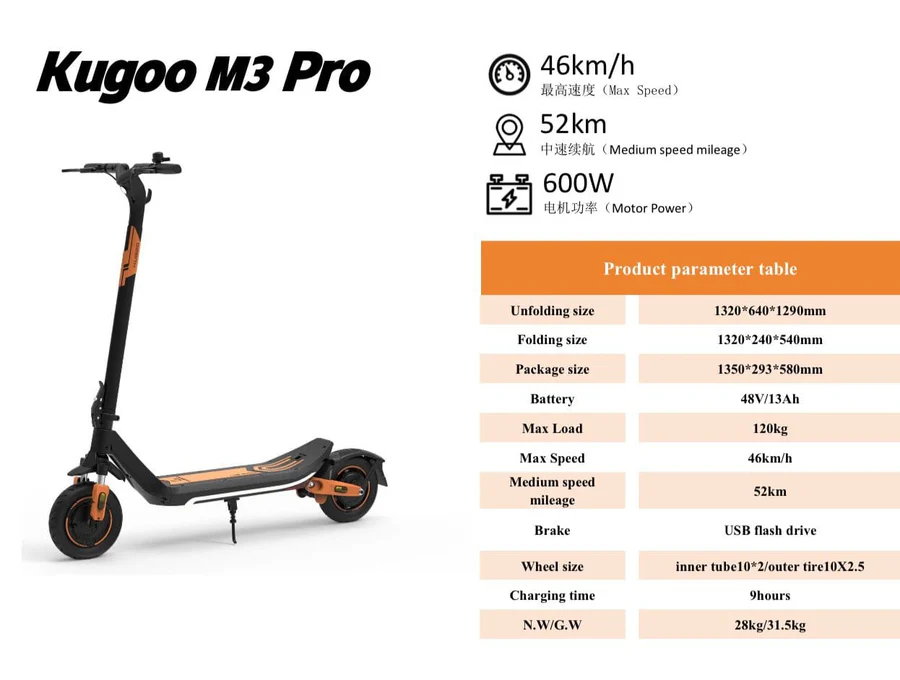 Kugoo M3 ProWith NFC Card Key600W Engine Power and 48V 13AhWith the Max Load of 120 Kg, a Light Weight Electric Scooter of 28 Kg With 10 inch Tire Size,…